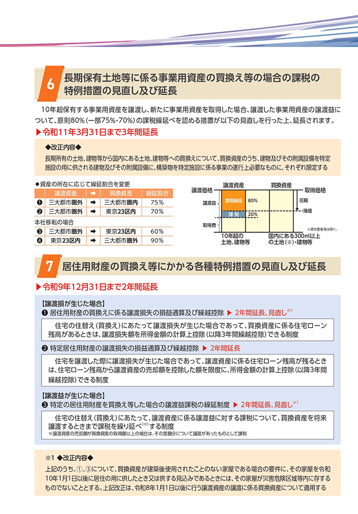 令和8年度税制改正大綱の「ポイント6 長期保有土地等に係る事業用資産の買換え等の場合の課税の特例措置の見直し及び延長」では下記内容についてご紹介しています。