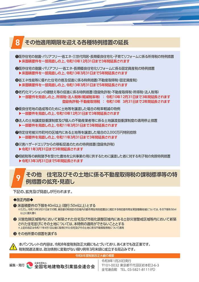 令和8年度税制改正大綱の「ポイント6 その他 住宅及びその土地に係る不動産取得税の課税標準等の特例措置の拡充・見直し」では下記内容についてご紹介しています。