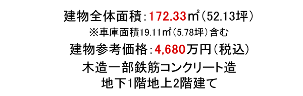 建物参考価格には、設計料、構造設計料、建築確認申請料、住宅瑕疵担保責任保険料、地盤補強工事、外溝工事、上下水道・ガス管宅内引込工事等が含まれておりません。