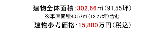 建物参考価格には、設計料、構造設計料、建築確認申請料、住宅瑕疵担保責任保険料、地盤補強工事、外溝工事、上下水道・ガス管宅内引込工事等が含まれておりません。